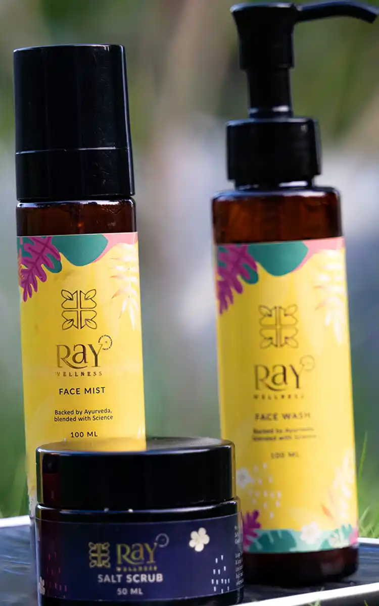After cleansing (and exfoliating when needed), spray the Raywellness Face Mist to refresh and hydrate your skin instantly. Follow with the Face Moisturizer to lock in moisture and nourish your skin deeply.