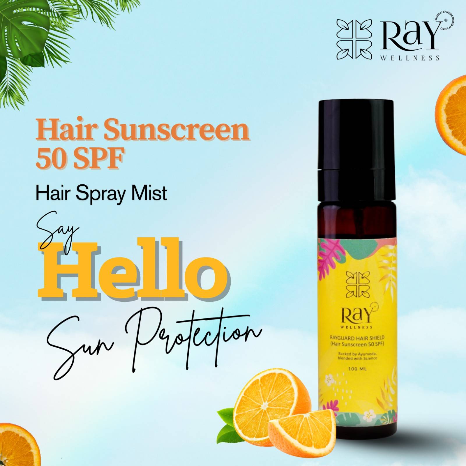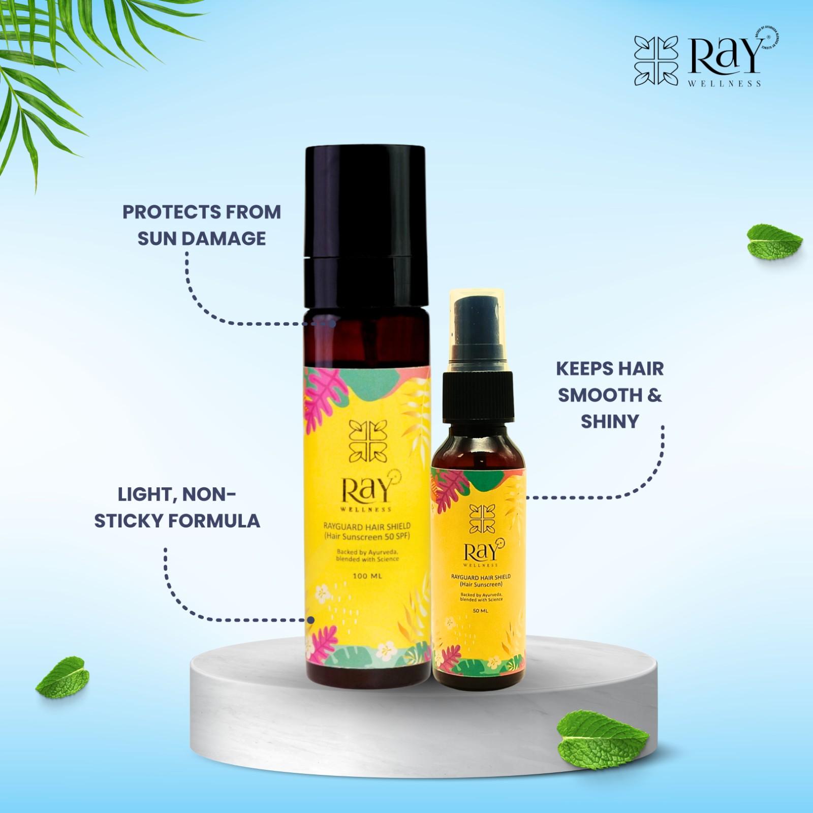 Protect your hair and scalp from harsh sun damage with Ray Wellness Hair Sunscreen SPF 50 – Ayurvedic UV protection hair sunscreen spray designed for daily use. Powered with Karanja extract, it forms a natural UV shield that prevents dryness, colour fading & heat damage, keeping your hair soft, shiny & healthy.
